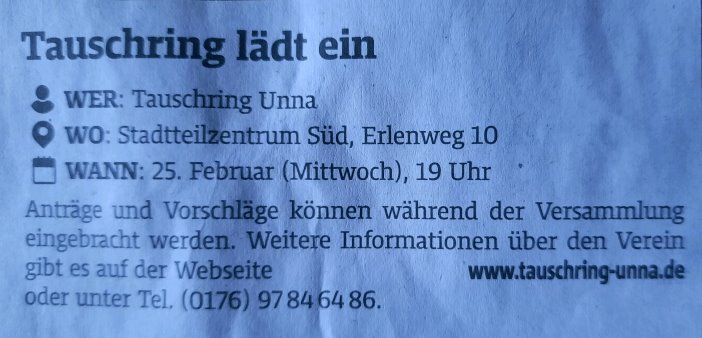 Ankündigung der Informationsveranstaltung im 'Fässchen'