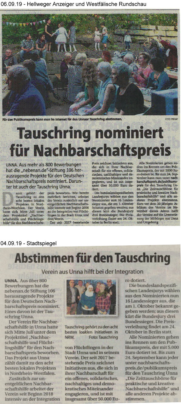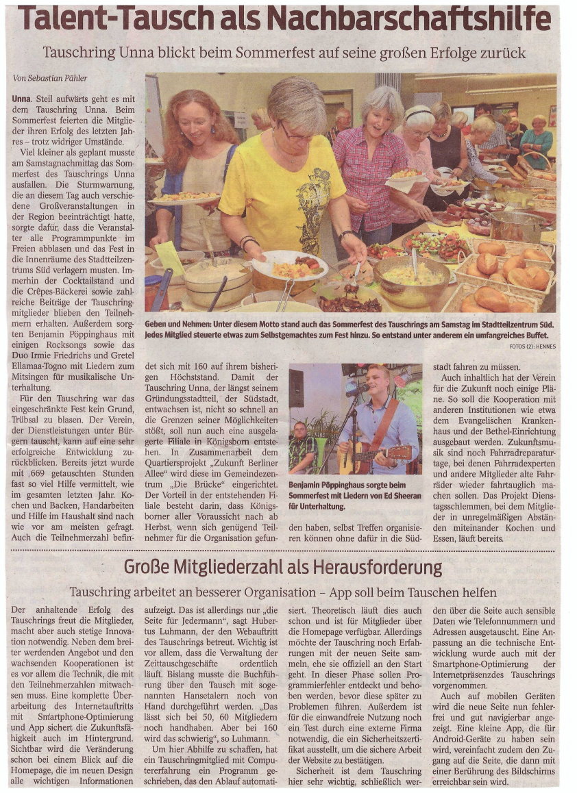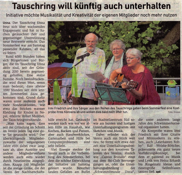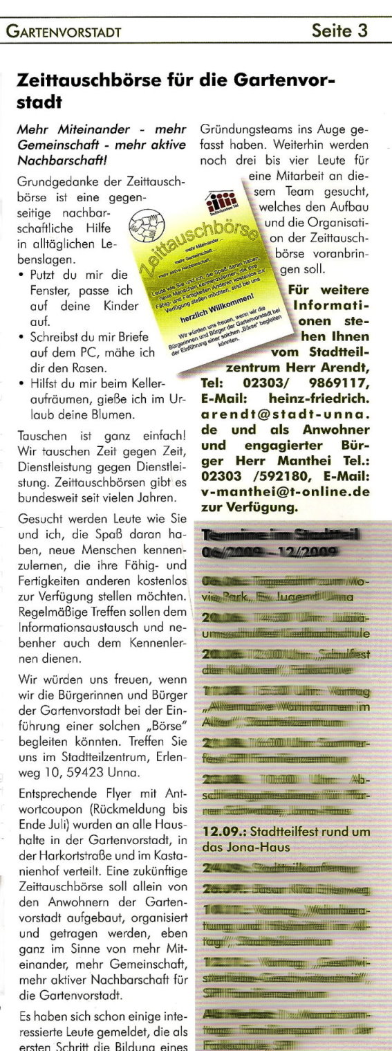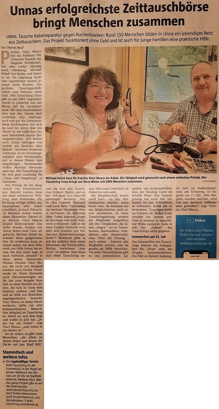 den Tauschring wurde erstmalig in der Presse berichtet. Der